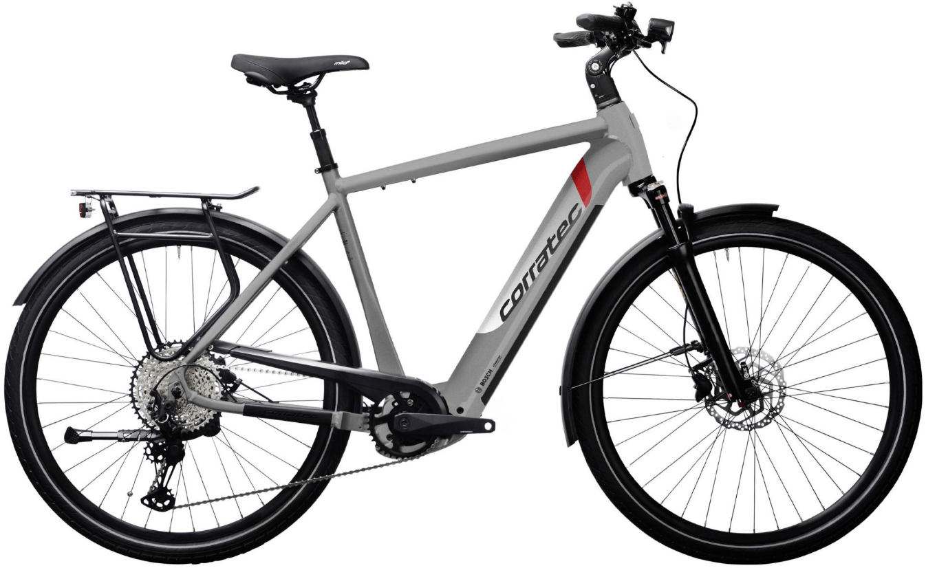 Dank praktischer Ausstattung wie Massload Gepäckträger mit integriertem Rücklicht, Schutzblechen und Herrmans H-Black MR8 Frontlicht ist das Corratec E-Power Sport 28 CX7 12S Gent bestens für den Alltag und längere Touren gerüstet.